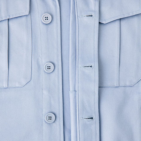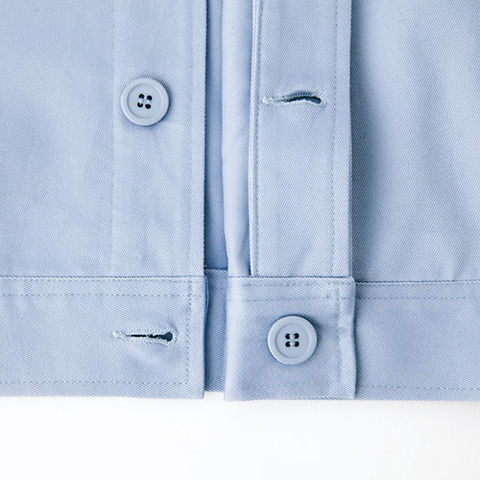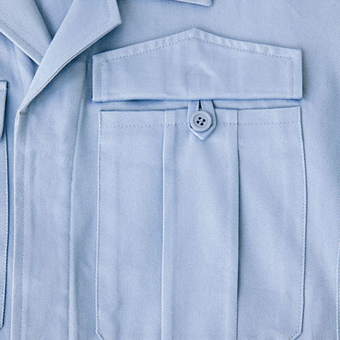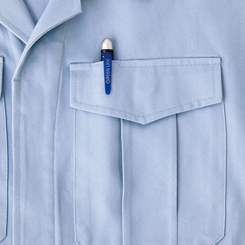 | 胸ペン差し:ペンやスケールなどが出し入れしやすい便利な装備。 胸ポケット落下防止ボタン:収納物の落下を防ぐボタン付き。 比翼ボタン仕様:作業時の引っかかりや、火の粉などからボタンを守ります。 袖ペン差し:袖の取り出しやすい位置にあり、よく使うペンなどを便利に収納。 肩プリーツ:肩のプリーツで腕周りにゆとりが生まれ腕の動きがさらに楽。 |