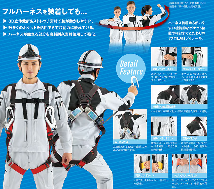 フルハーネス装着時も高い運動性を発揮するプロ仕様