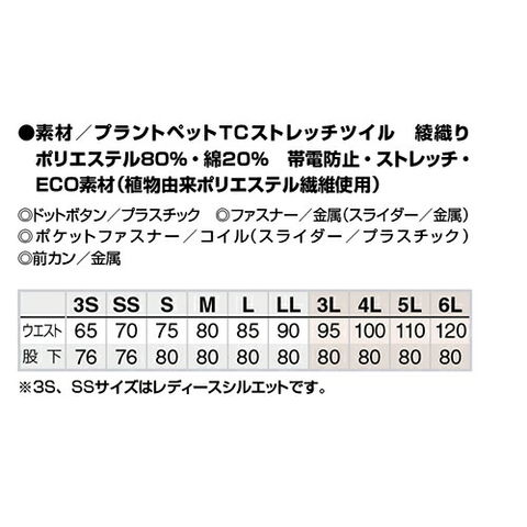| バイオエコTC素材のエコマーク対応商品。植物由来のサスティナブル素材、帝人フロンティア「プラントペットRストレッチ」を採用。ウエスト部分はサイドリブ仕様になっており、圧迫感を軽減します。 ポケット内に便利に使えるサブポケット、鍵やキーチェーンが取り付けられるサブループなど装備されており機能面もgoodです。 |