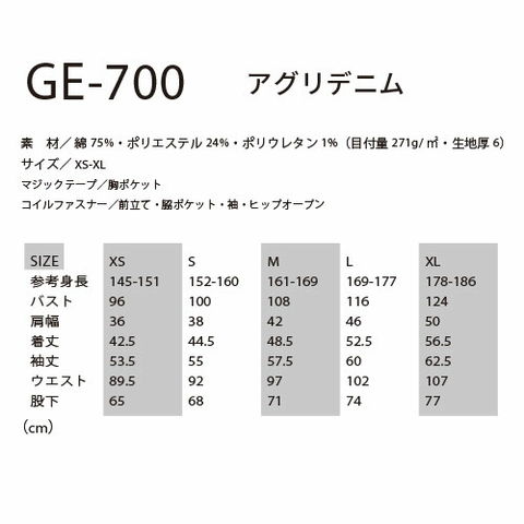 アグリデニム つなぎ ツナギ GE-700 エスケープロダクト 作業着 通年 秋冬 オーバーオール 長袖 メンズ レディース 男性 女性 ツナギ服 続服 ストレッチ 農作業 畑仕事 酪農 整備 DIY diy おしゃれ かっこいい かわいい 可愛い
