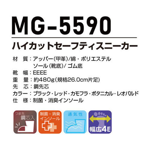 安全靴 ハイカット 喜多 ハイカットセーフティスニーカー MG5590 紐靴 先芯あり