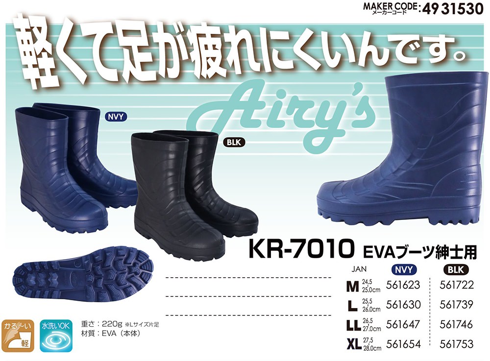 長靴 喜多 紳士EVAショート長靴 KR7010 レインブーツ ショートタイプ