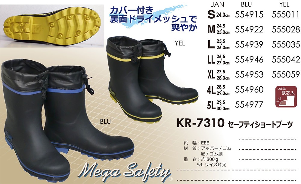 安全長靴 喜多 安全ショートゴム長靴(カバー付) KR7310 レインブーツ ショートタイプ