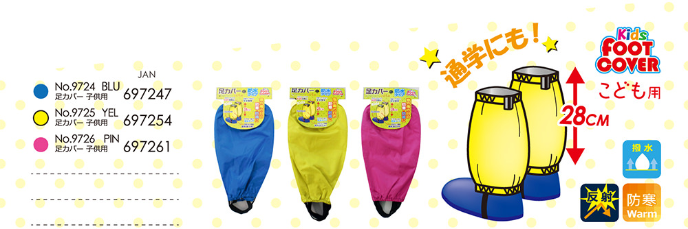 裏生地をPUラミネートした防水タイプの子供用足カバーです