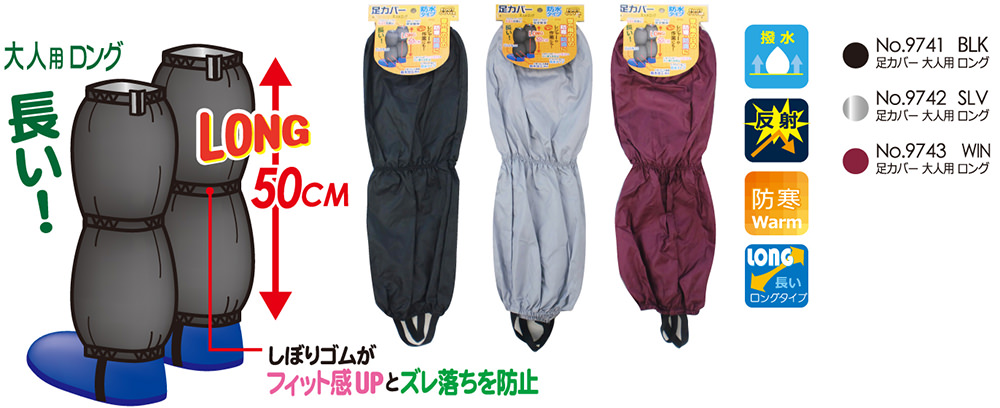 裏生地をPUラミネートした防水タイプのロングタイプの大人用足カバーです