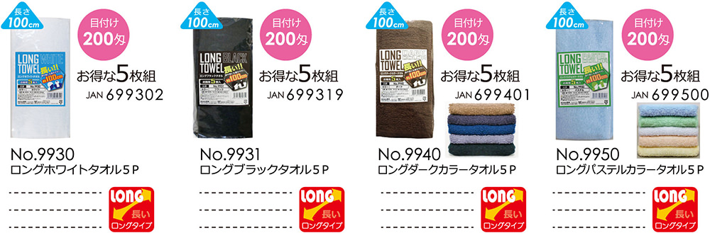 タオル 喜多 ロングタオル5枚組 ダークカラーアソート No9940