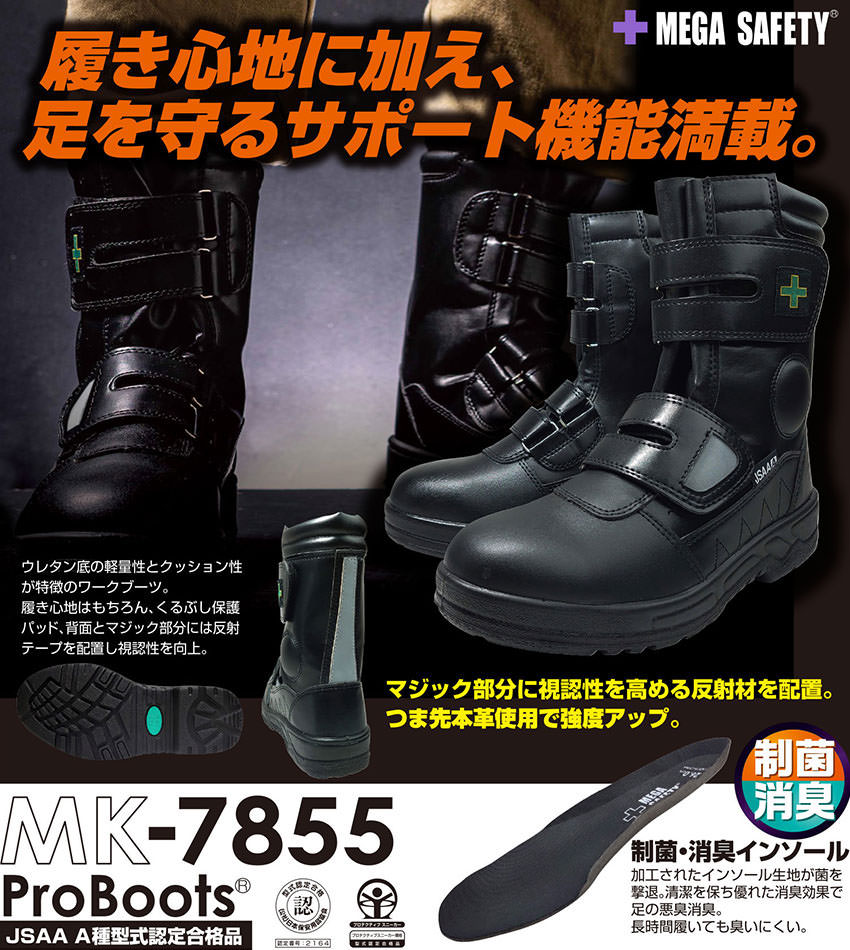 安全靴 ブーツ 喜多 プロブーツ 制菌・消臭 ウレタン耐油底 MK7855 マジックテープ JSAA規格 プロテクティブスニーカー