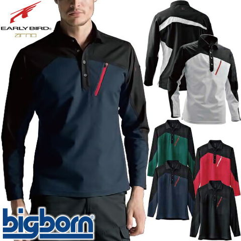 作業服 ポロシャツ 長袖 ビッグボーン ロングスリーブトリコットシャツ EBA505 作業着 春夏 ストレッチ UVカット 防汚 メンズ かっこいい 涼しい
