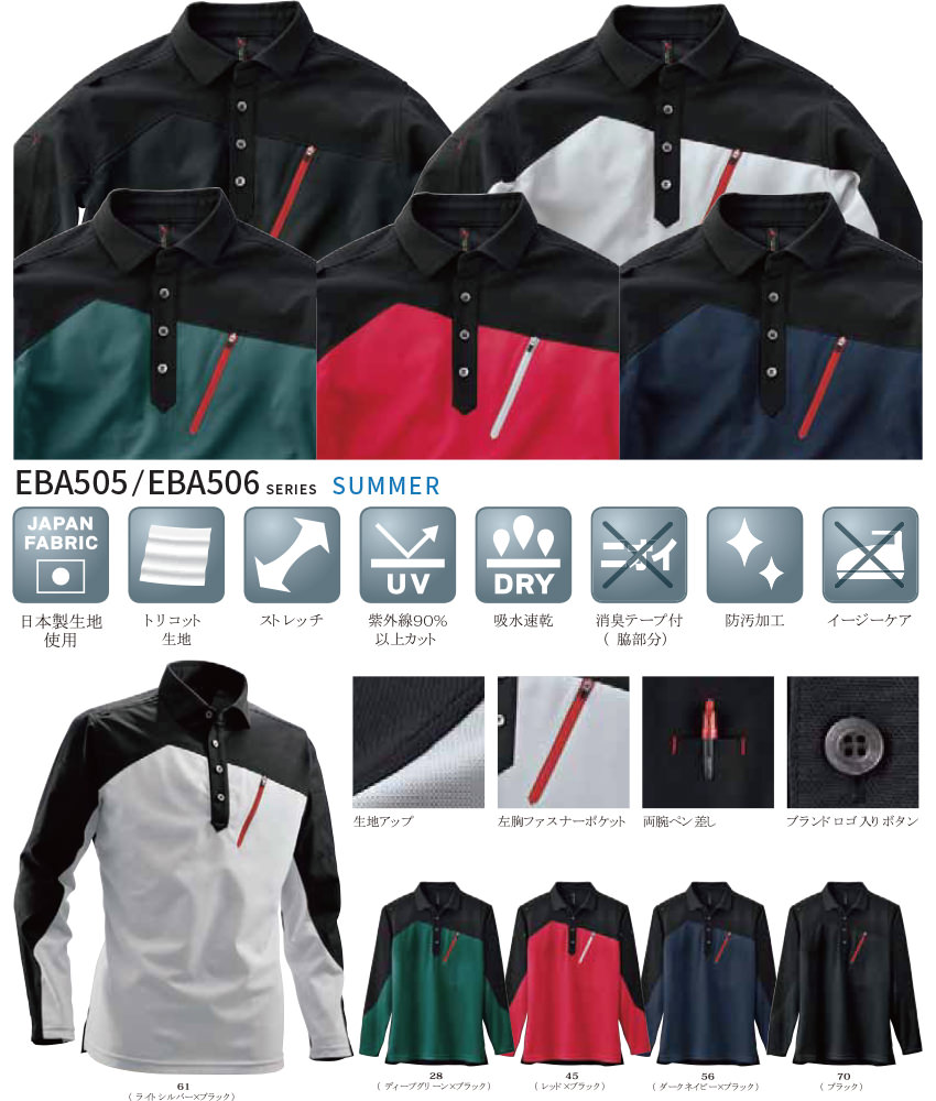 作業服 ポロシャツ 長袖 ビッグボーン ロングスリーブトリコットシャツ EBA505 作業着 春夏 ストレッチ UVカット 防汚 メンズ かっこいい 涼しいのレビュー