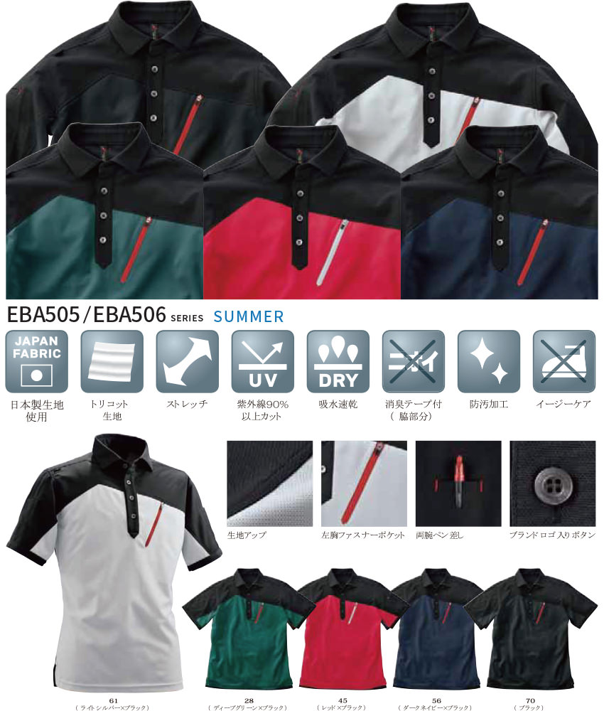作業服 ポロシャツ 半袖 ビッグボーン ショートスリーブトリコットシャツ EBA506 作業着 春夏 ストレッチ UVカット 防汚 メンズ かっこいい 涼しい