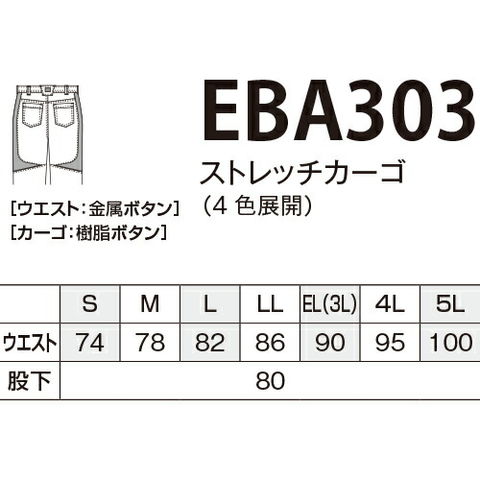 作業服 カーゴパンツ ビッグボーン ストレッチカーゴ EBA303 作業着 通年 秋冬作業着 作業服 カーゴパンツ おしゃれ かっこいい 人気 ズボン 作業ズボン 作業パンツ 作業 工事 土木 塗装 DIY diy