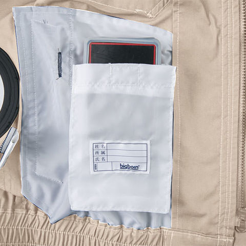 | 首調整ヒモ、左胸ペン差し、左袖ペン差し、左内側ボックスポケット |