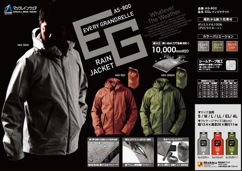 レインジャケット EGレインジャケット AS-800 レインウエア 雨具 雨合羽 合羽 カッパ バイク 自転車 釣り キャンプ フィッシング アウトドア 登山 レジャー 通勤 通学 ゴルフ フェス メンズ レディース Makku マック
