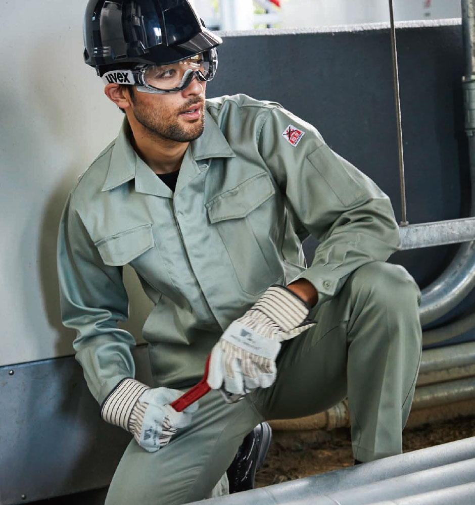 | LOI値(限界酸素指数)30を達成した防炎素材ワークウェア ・火を使う現場でも安心な綿100%防炎加工素材使用 |