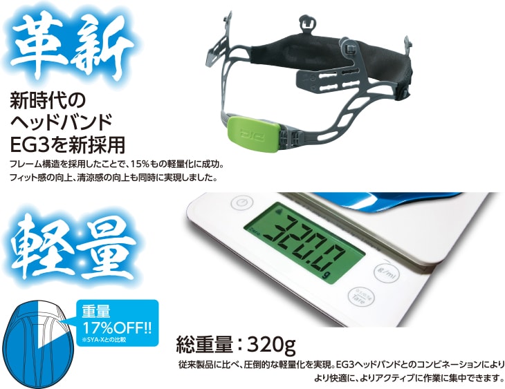 | 雨垂れ防止溝、電気対応ヘルメット |