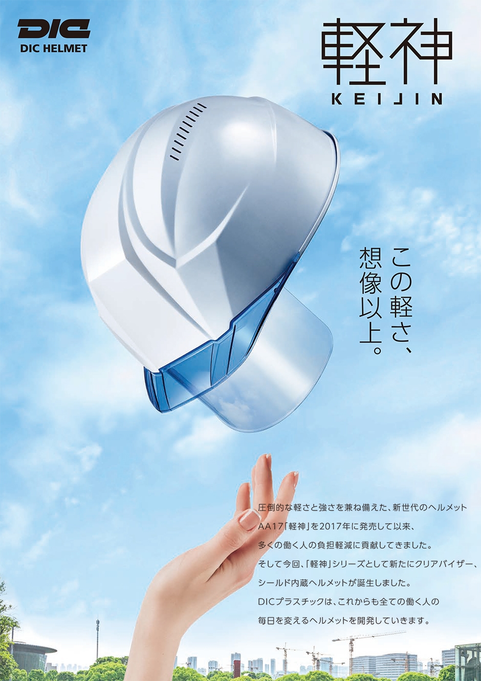 ヘルメット DICプラスチック 軽神 AA23-CV HA8E-4-K23式 ABS樹脂 軽量 軽い クリアバイザー シールド付き 作業用 工事用 安全 工事 現場 透明 ひさし 暑さ対策 蒸れにくい 土木 建築 防災 男性 女性 おしゃれ オシャレ かっこいい