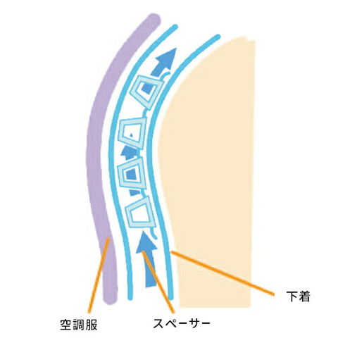 | ・背中や肩の空気流通路を確保するためのオプションです。 ・背中に荷物を背負う際や、服地が厚く重い空調服を着用する際に有効です。 ・独自開発の3次元立体構造のスペーサーは、空気流通路を確保するための強度と、着用時に体にフィットするための柔軟性を兼ね備えています。 ・重量は約190gと軽量です。 |