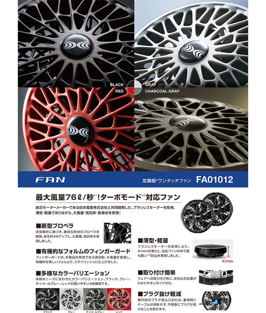 EFウエア ファン 空調服 空調服ワンタッチファン 2個 14.4V用 FA01012 作業着 作業服 春夏 ファン 扇風機 空調服対応