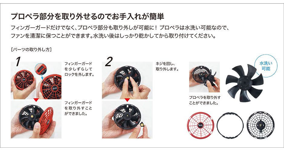 | ※炎天下の車内等(高温の場所)に放置しないようご注意ください。 ※羽が折れる場合があるためエアーガンによるファンの清掃は行わないでください。 ※専用バッテリー以外は使用しないでください。故障や事故の原因になります。 |