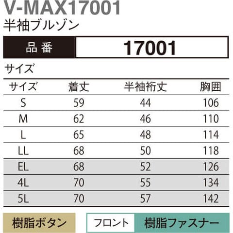 作業服 ブルゾン 大川被服 DAIRIKI ダイリキ V-MAX17001 半袖ブルゾン 17001 作業着 春夏