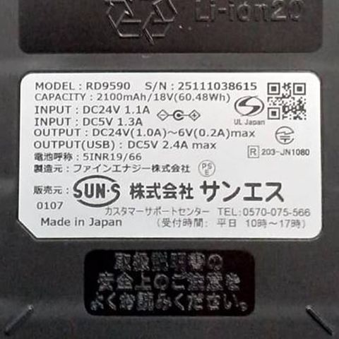 | 届出事業者名:株式会社サンエス PSマークの種類:PSE MADEINJAPAN |