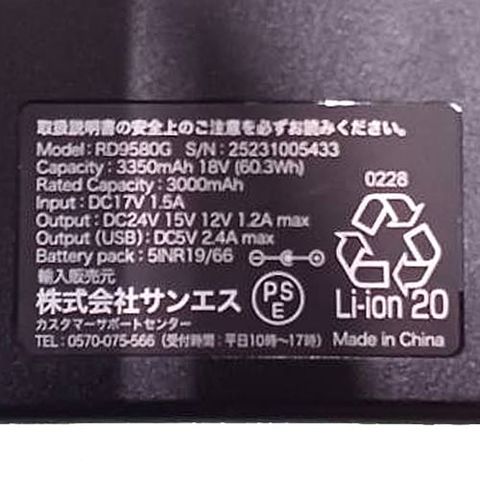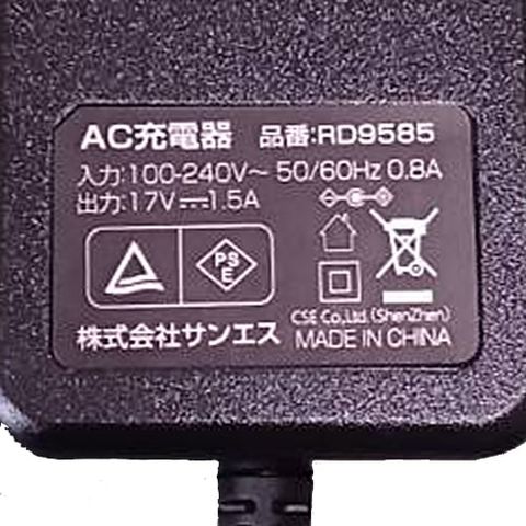 | 届出事業者名:株式会社サンエス PSマークの種類:PSE Made in China |
