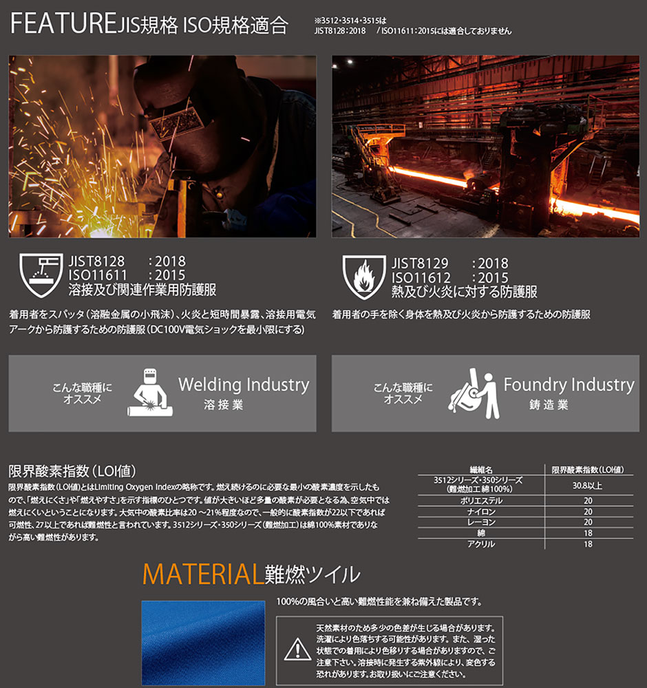 作業服 ブルゾン Asahicho 旭蝶繊維 難燃長袖ブルゾン 3512 作業着 春夏 難燃加工 綿100% 耐熱 溶接業 鋳造業 火炎 防護 燃えにくい