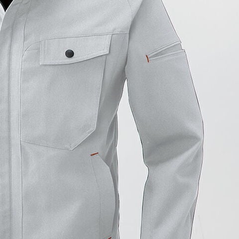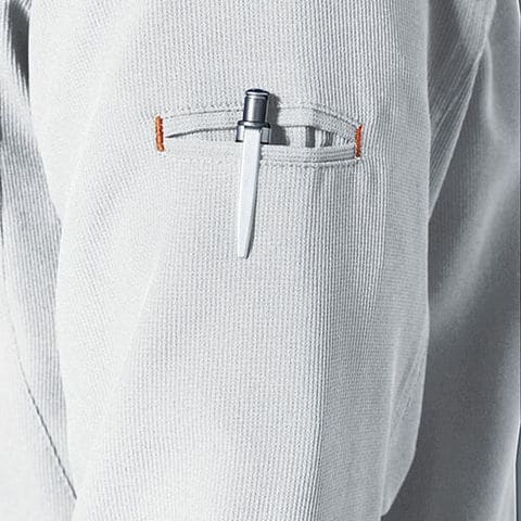 | 台衿吸汗メッシュ、胸ファスナーポケット、胸ペン差し、袖ペン差し、デオドラントテープ、内ペン差し、胸マチ付きポケット(野帳が入る)、ひじタック |