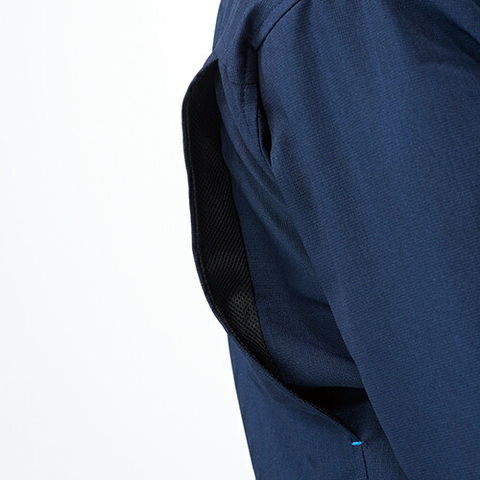 | 背裏メッシュ、隠しマジックテープ、胸ポケット(野帳が入る)、胸ペン差し、袖ペン差し、デオドラントテープ、ノーフォークメッシュ、裾アジャストボタン |