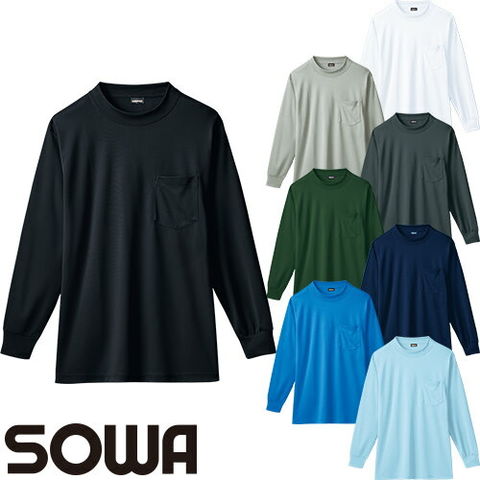 長袖Tシャツ ロンT SOWA 桑和 ストレッチ 吸汗 速乾 ドライ 消臭 通気性 メッシュ 長袖ローネックTシャツ 胸ポケット付き ロングTシャツ メンズ ロングティーシャツ 白 黒 カットソー ロングスリーブ 無地 おしゃれ 人気 安い 50388