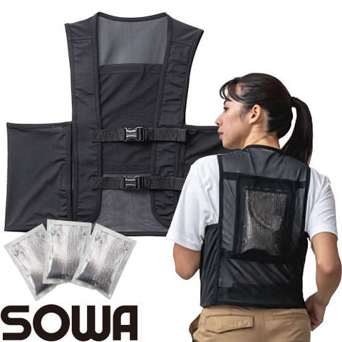 EFウェア 桑和 SOWA 保冷剤ベスト(保冷剤3個付き) 作業着 作業服 春夏 冷感 ストレッチ 消臭 吸汗速乾 反射 イージーケア 風通しが良い