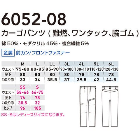 作業服 カーゴパンツ 桑和 SOWA カーゴパンツ(難燃 ワンタック 脇ゴム) 6052-08 作業着 春夏 難燃 防炎 BREVANO ブレバノプラス 男女共用 ストレッチ 消臭