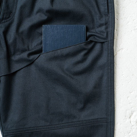 | 前カン、デオドラントテープ、ひざ補強布、裾紐通しホール(※紐はついていません)、ヒップポケット(野帳が入る)、ウエストゴム、ヒヨク付きカーゴポケット(野帳が入る) |