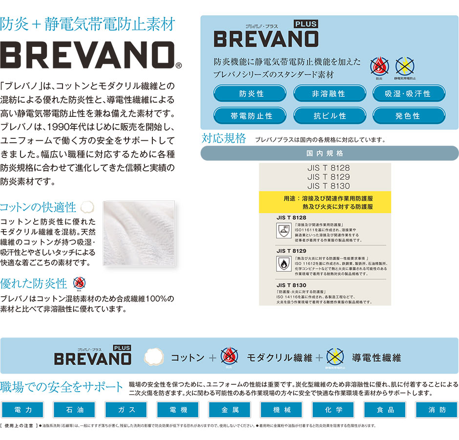 防炎+ 静電気帯電防止+ ストレッチ素材 ブレバノプラス使用!現場で必要とされる機能とデザインを追求