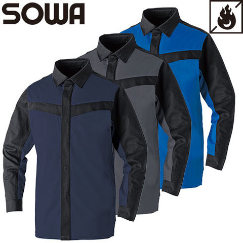 作業服 長袖シャツ 桑和 SOWA 長袖シャツ(難燃) 6042-02 作業着 春夏 難燃 防炎 綿100% 男女共用