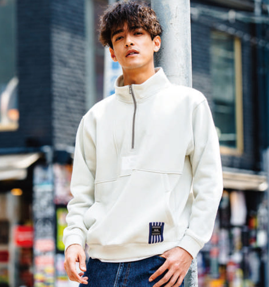 | 衿元ロゴ入りラインテープ、胸元ロゴプリント、両脇ポケット、後ろニットラインテープ、袖口リブ、裾リブ |