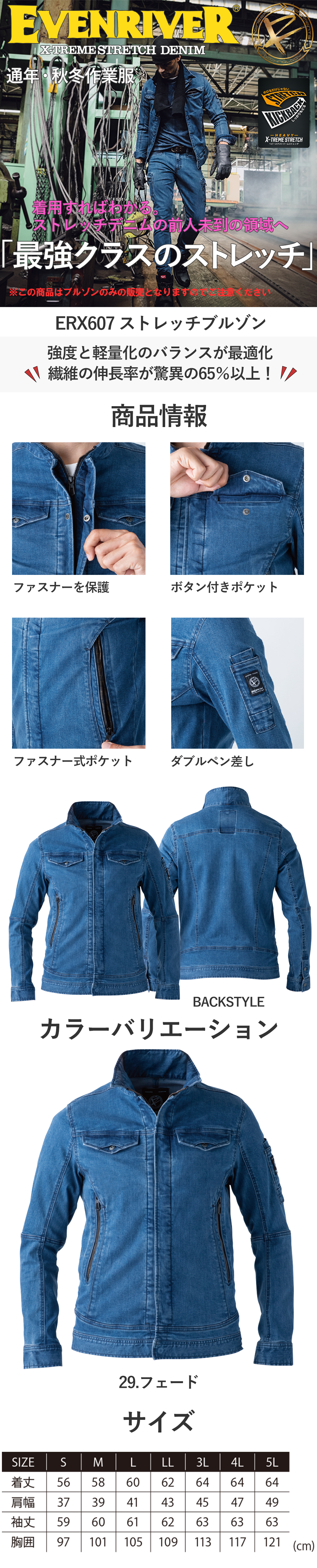 作業服 デニム イーブンリバー EVENRIVER ヘビーエクストリームストレッチデニムブルゾン ERX607 作業着 通年 秋冬作業着 作業服 デニムジャケット 通年 上着 デニム作業服 デニム作業着 ブルゾン ジャケット ワークウェア 仕事 土木