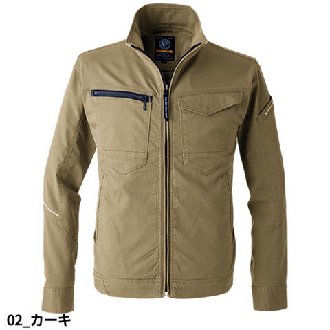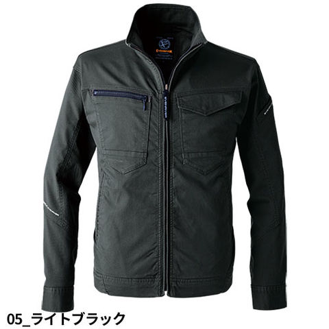 | 前ファスナー引き手、右胸ファスナーポケット、左袖ペン差し付、袖口ロットボタン、ストレッチ性 |