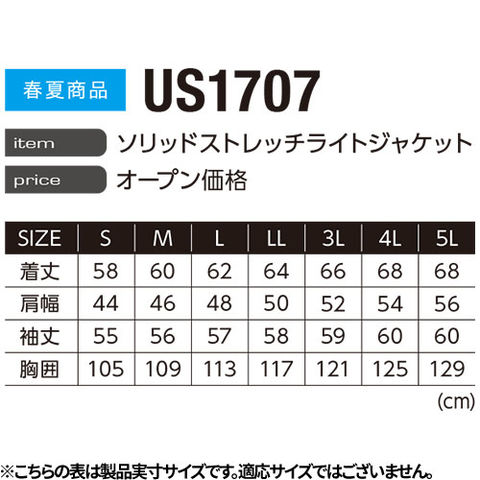 作業服 ブルゾン イーブンリバー EVENRIVER ソリッドストレッチライトジャケット US1707 作業着 春夏 接触冷感 ストレッチ 綿混 吸汗 シンプル カッコいい スッキリ