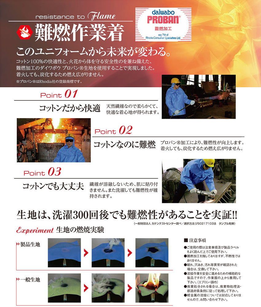 | 前ボタン、袖口マジック、ダイワボウ「プロバン加工」素材使用 |