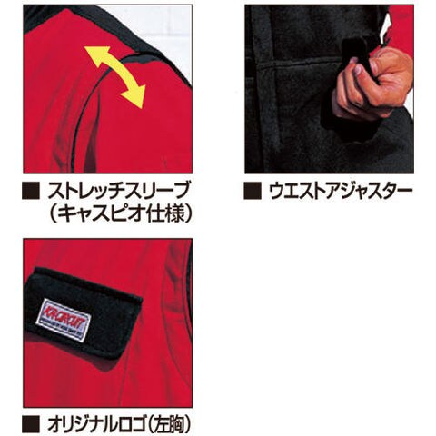 肩回りの機動性を追求したストレッチスリーブや腰回りの幅を絞る事ができる「ウエストアジャスター」等、機能の充実を図ったプロ仕様ピットスーツ。