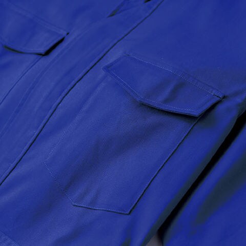 | 生地は帯電防止、軽撥水、ヨコのびストレッチ素材です。 脇にはメッシュを配置し通気性もアップ センターは前立てを付け、胸ポケットは大きな仕様になっており、さらにフラップ下に隠しファスナーを付けたプロ仕様の機能性ツナギです。 |