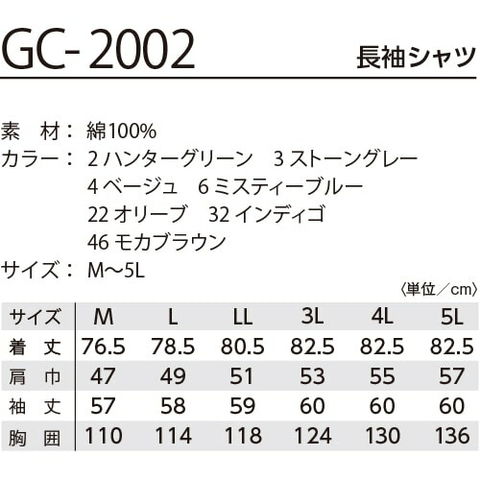 作業服 長袖シャツ タカヤ商事 TAKAYA GRANCISCO グランシスコ 長袖シャツ GC-2002 作業着 通年 秋冬