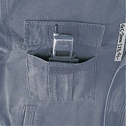 | 1.トリプルステッチ 2.グランシスコオリジナルボタン 3.マジックテープ仕様携帯電話収納ポケット 4.左胸ペン差し付ポケット |