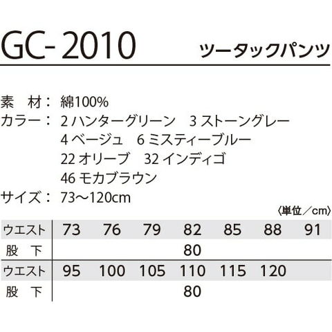 作業服 パンツ スラックス タカヤ商事 TAKAYA GRANCISCO グランシスコ ツータックパンツ GC-2010 作業着 通年 秋冬作業着 作業服 スラックス 作業ズボン 作業パンツ ワークパンツ ズボン おしゃれ かっこいい オフィス ユニホー