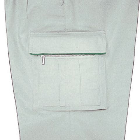 | 1.右前ポケットにコインを収納できるパッチポケット 2.動きの激しい股部分を棒シックで補強 3.バックのベルトループは力強い幅ひろ仕様 4.両サイドポケットはファスナー付マゴポケット。右ポケット内携帯電話専用ポケット付。フラップはパイピング仕様。 |