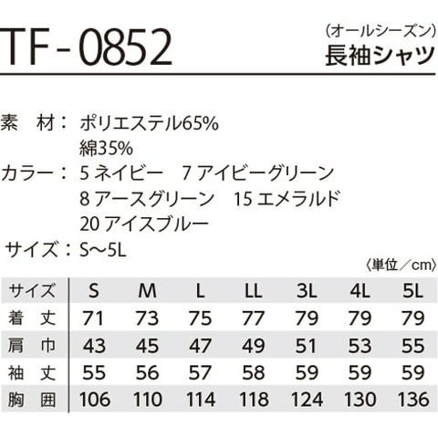 作業服 長袖シャツ タカヤ商事 TAKAYA 長袖シャツ TF-0852 作業着 通年 秋冬