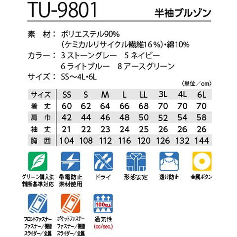 作業服 ブルゾン タカヤ商事 TAKAYA 半袖ブルゾン TU-9801 作業着 春夏