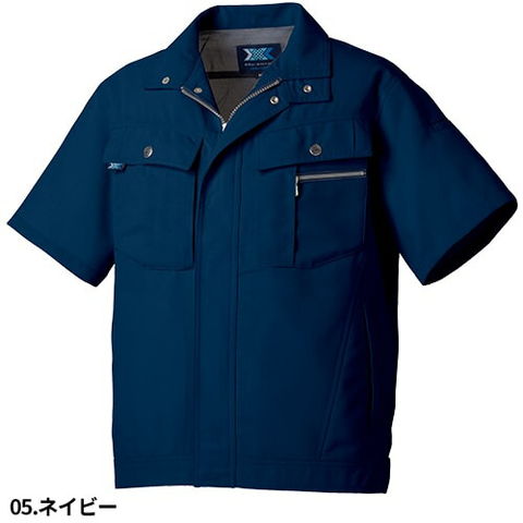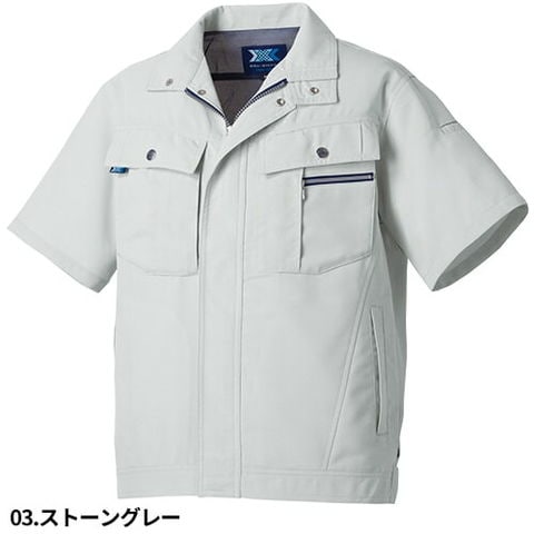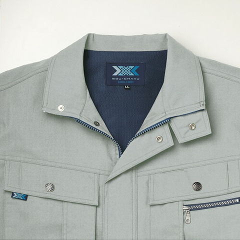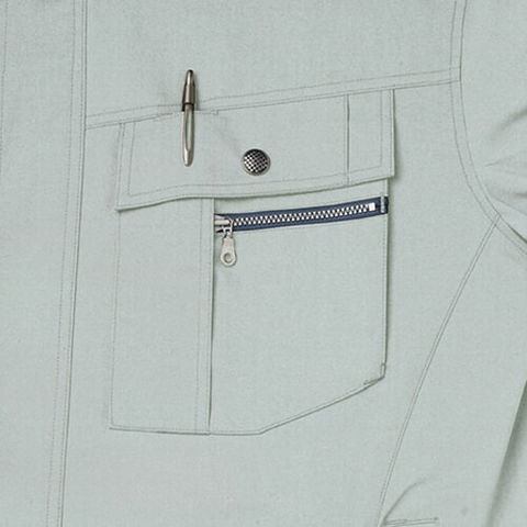 | スマートフォンも収納できる便利な右胸ダブルポケット(縦ファスナー付)、左胸ペン差し付ダブルポケット(マゴポケファスナー付)、左袖ペン差し、ベトツキを防ぐ肩当メッシュ仕様、裾両サイドはスリット仕様(調整ボタン付)、動きやすさに涼しさをプラスしたメッシュノーフォーク、金属ボタン、フロントファスナー、ポケットファスナー |