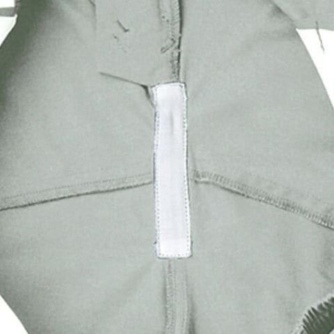| サイドシャーリング、動きの激しい股部分を棒シックで補強、金属ボタン、フロントファスナー |